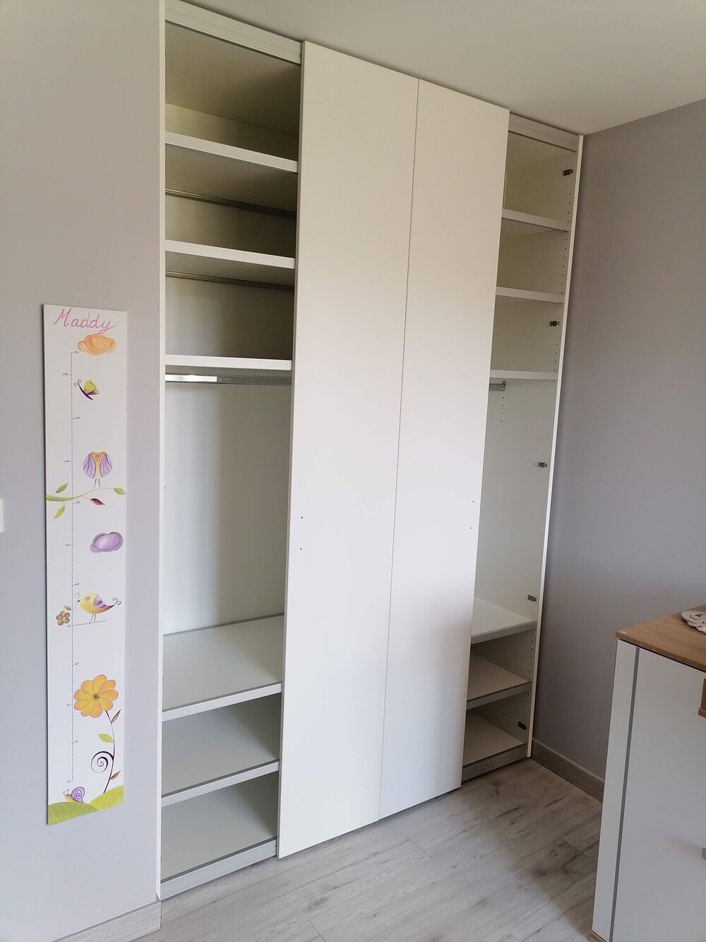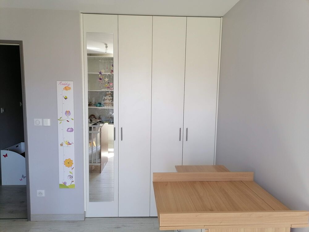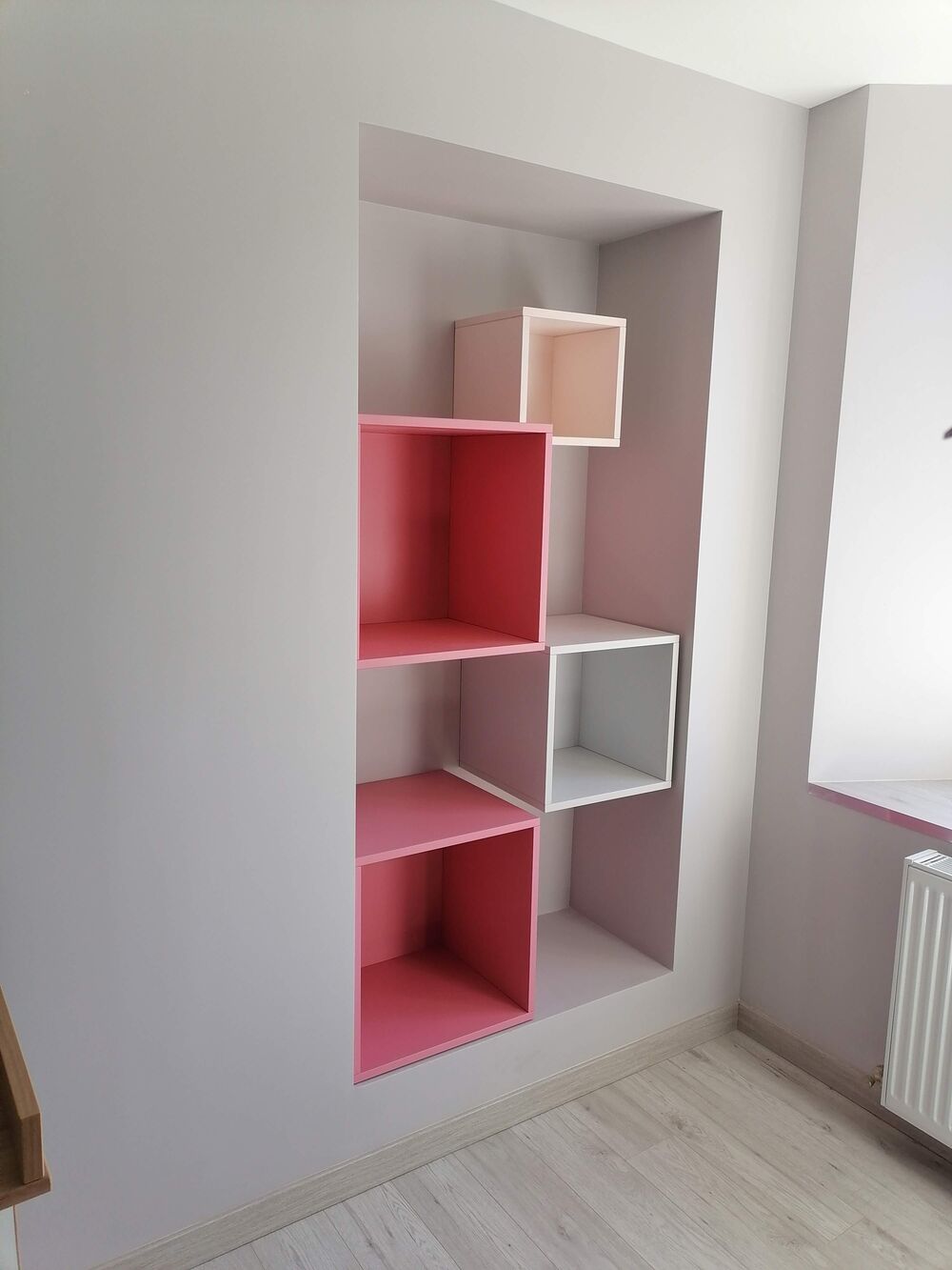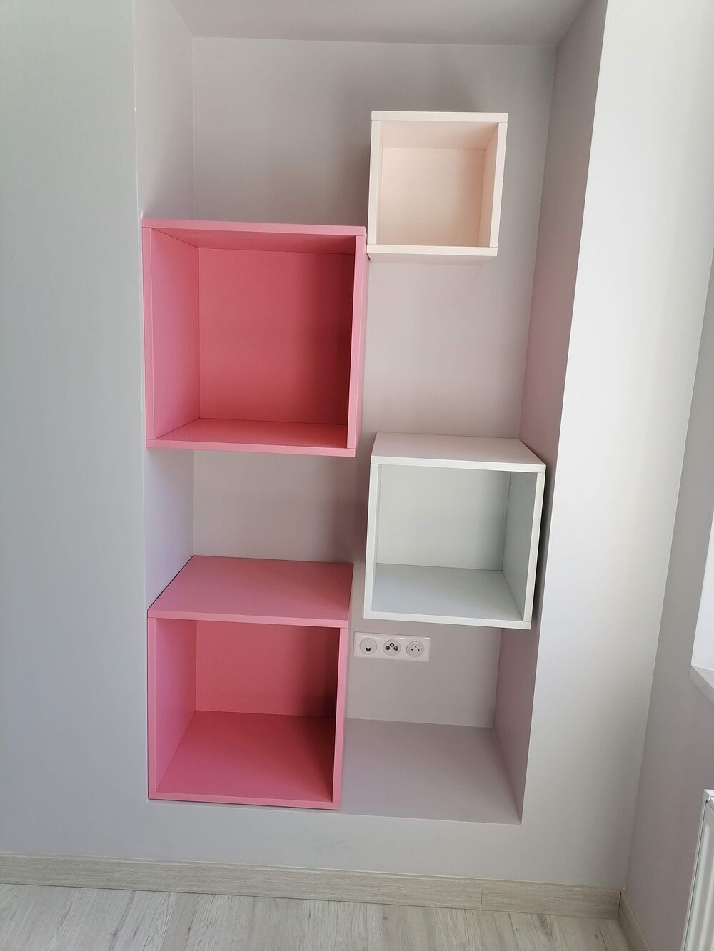 Rangement mural chambre enfants avec étagères et penderies + Niches colorées